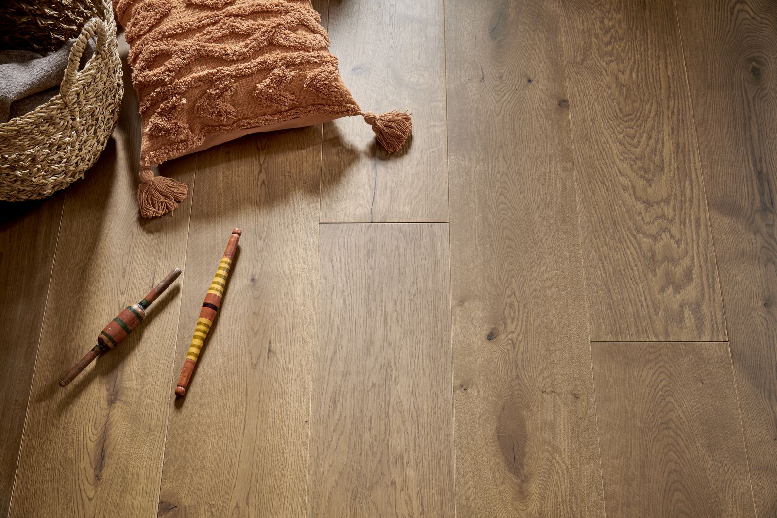 Bold and sophisticated, this wood floor features striking dark grain patterns and deep, warming tones that highlight the natural character of oak. A rich dark stain enhances its depth, while bevelled edges add definition and structure to the overall design. Each board is finished with five coats of oil, delivering a smooth satin sheen and exceptional durability. Now also available in an opulent 240mm width. Kimbers offer a fully guaranteed fitting service for all wood floors, please contact us for more details.